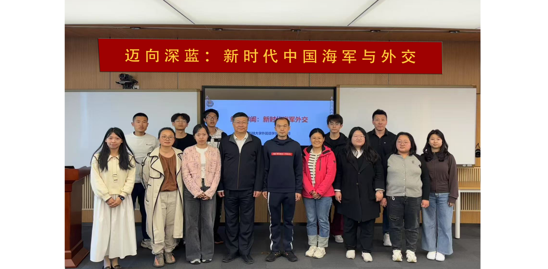 4月23日是中国人民解放军海军成立76周年纪念日。这一天,由海洋发展研究院主办的“知海军·强军威”专题系列讲座,在学校“树下空间”3楼报告厅顺利举办。国防科技大学青年教师杜博讲师,分别作了“迈向深蓝:新时代中国海军”“纵横捭阖:新时代海军外交”专题报告。冯梁教授主持讲座。